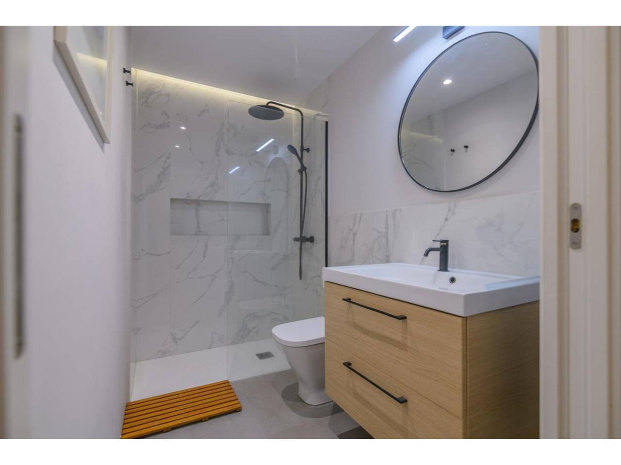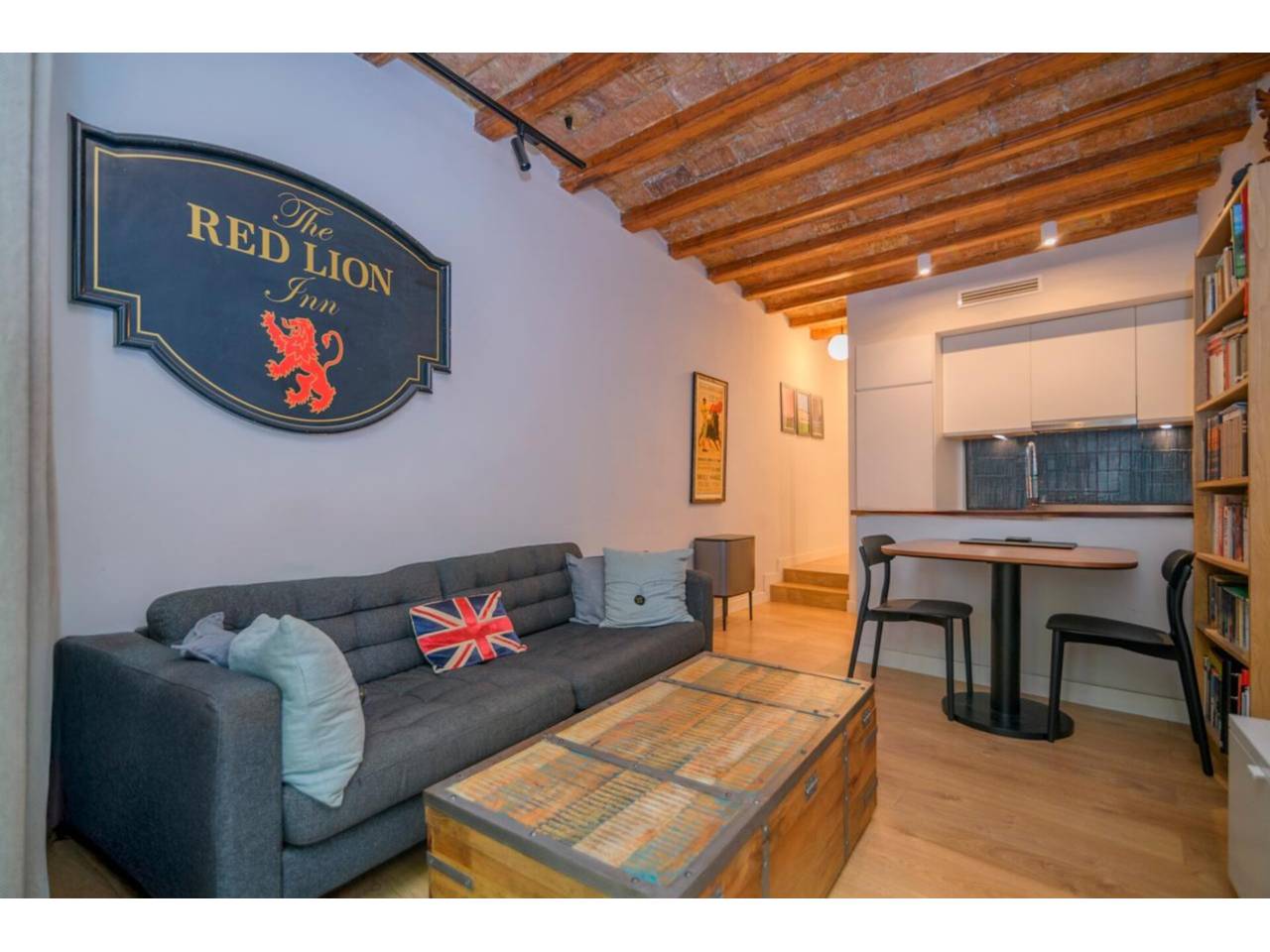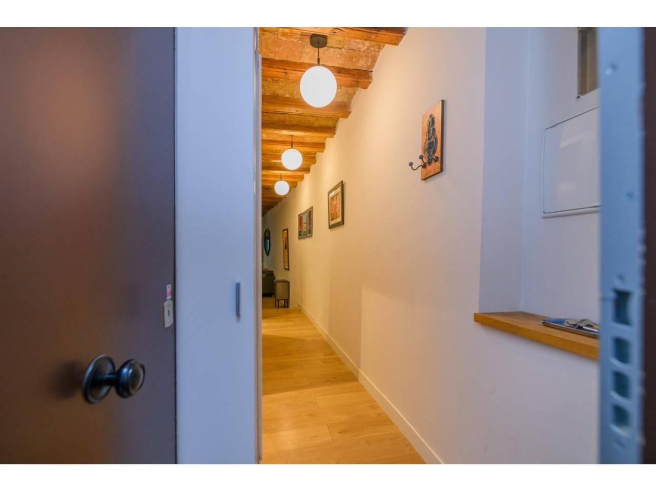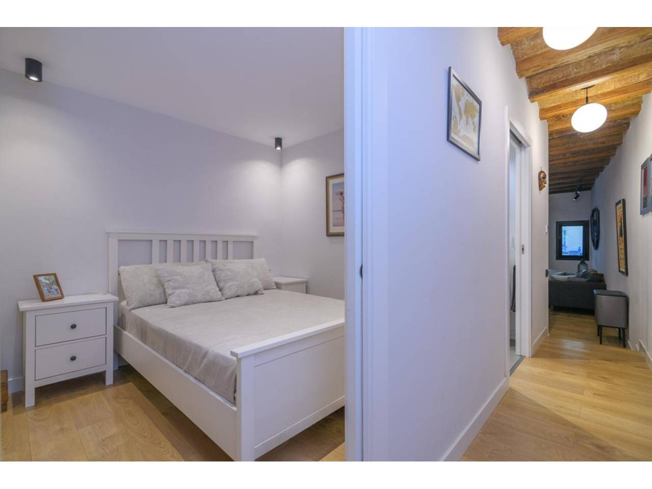 Se distribuye en un luminoso salón-comedor exterior con balcón y cocina americana integrada, equipada con electrodomésticos panelados y de última generación (inducción, horno, campana extractora, nevera, lavavajillas y lavadora). Dispone además de un dormitorio doble con armario y un elegante baño con amplio plato de ducha tipo lluvia. La reforma ha sido integral, incluyendo la instalación eléctrica. Los suelos de parquet, los techos altos con volta catalana y vigas de madera aportan carácter y atractivo adicional a la vivienda.